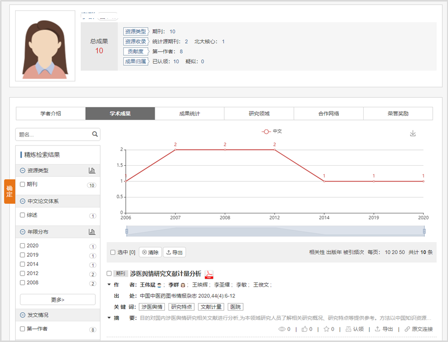 第三步:根据系统推荐的符合检索条件的人员清单,选择所需检索的作者